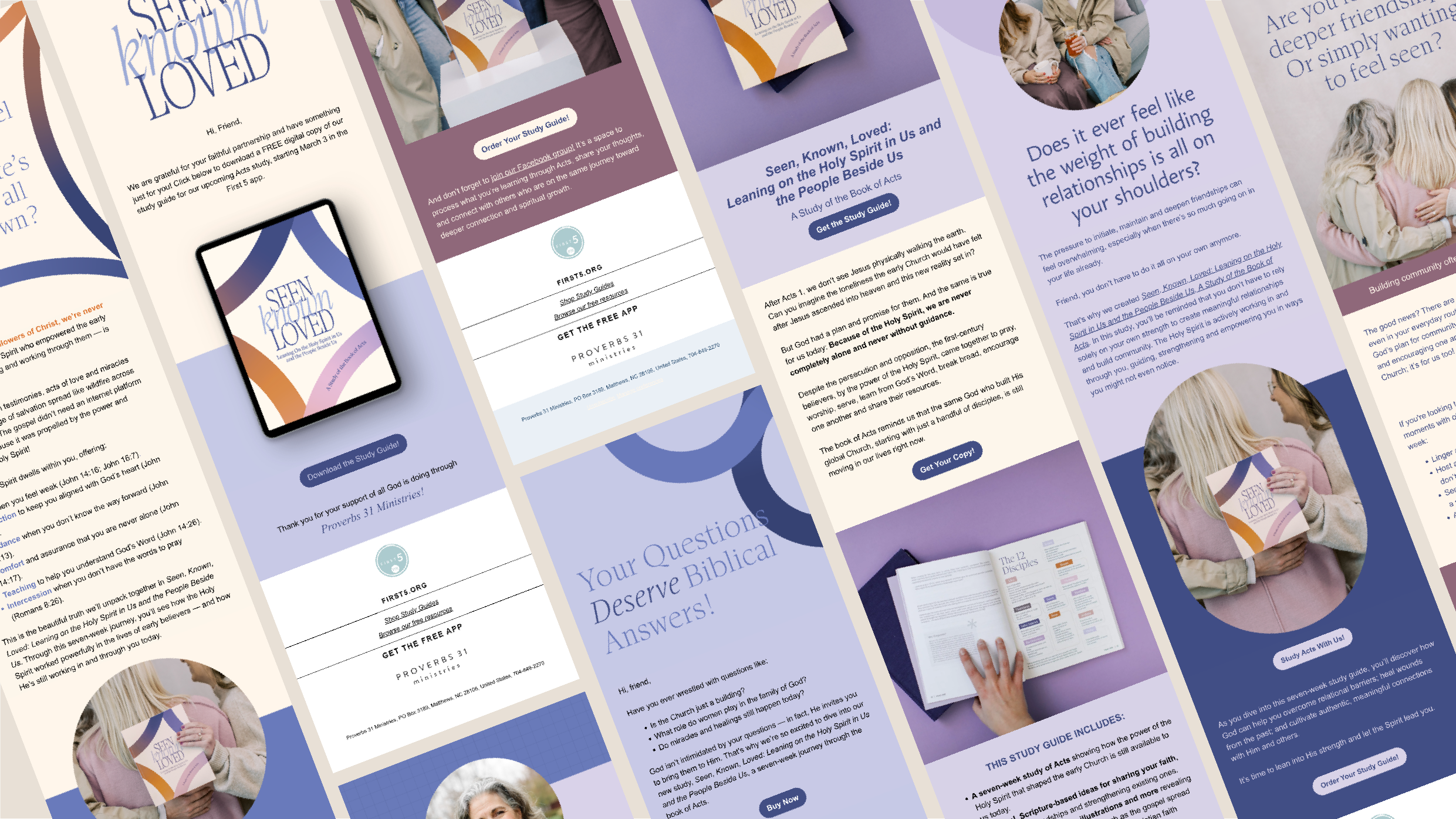 Seen, Known, Loved: Leaning on the Holy Spirit in Us and the People Beside Us, is a seven-week study of the book of Acts by Kelley Brown. The project included designing a 162 page study guide with layouts and visual elements that support Scripture-based learning—such as maps, charts, and illustrations—helping readers explore the growth of the early Church and the ongoing work of the Holy Spirit.