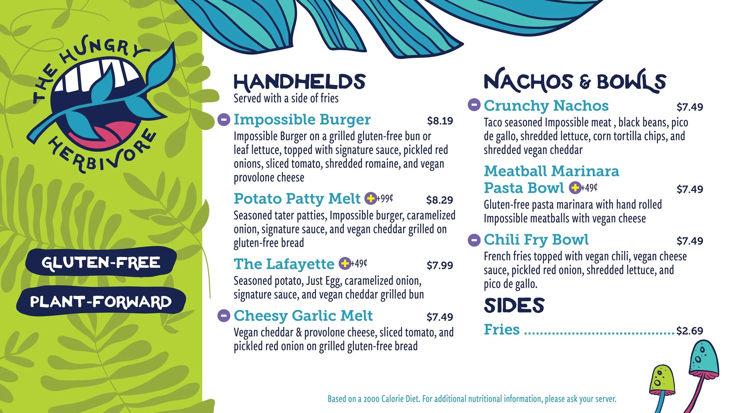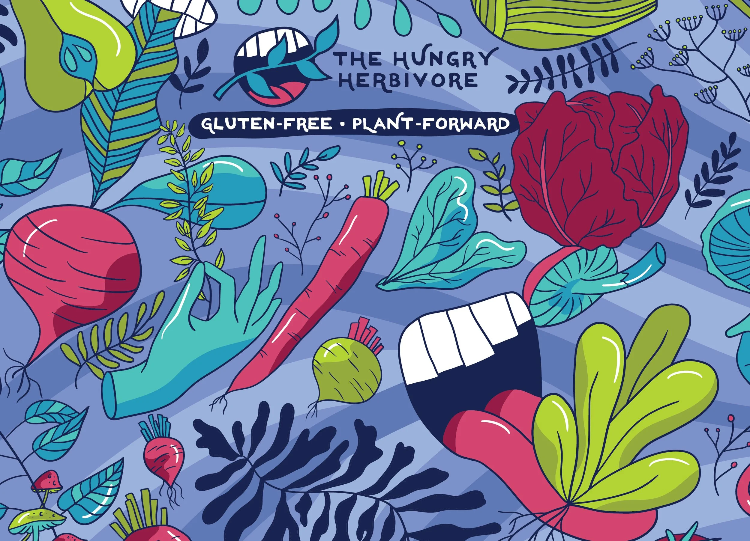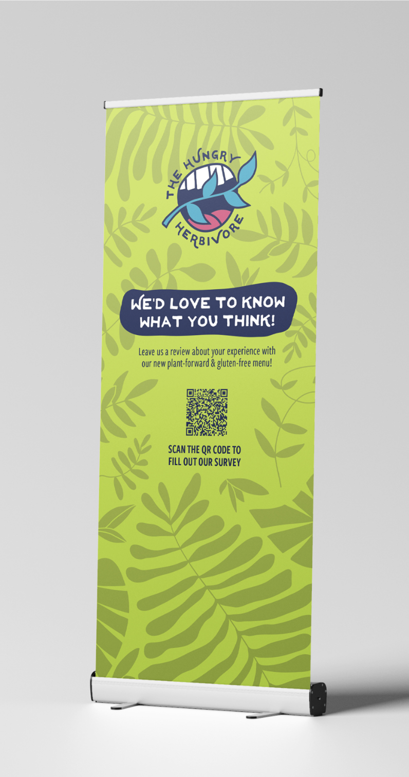 Liberty Dining was looking to change out one of their restaurant concepts with a plant based and gluten free option. My team was tasked with developing that concept and bringing it to life. We decided on The Hungry Herbivore as the name of the concept then it was my job to craft the branding.